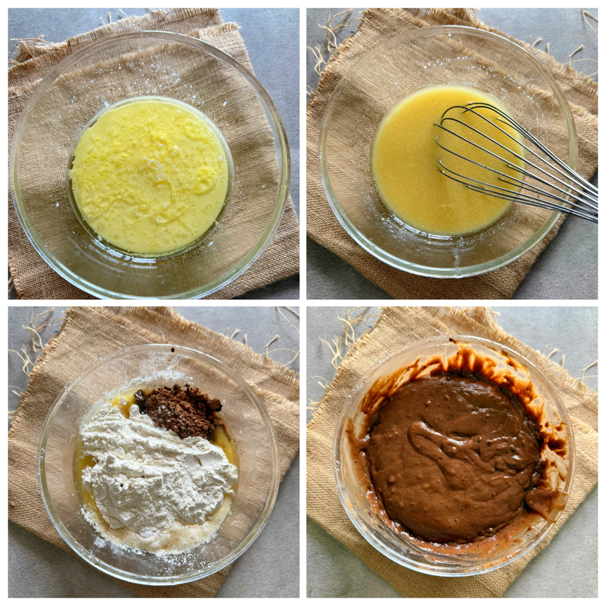 Add the dry ingredients little by little. Gently combine together to make a smooth and lump free batter.
